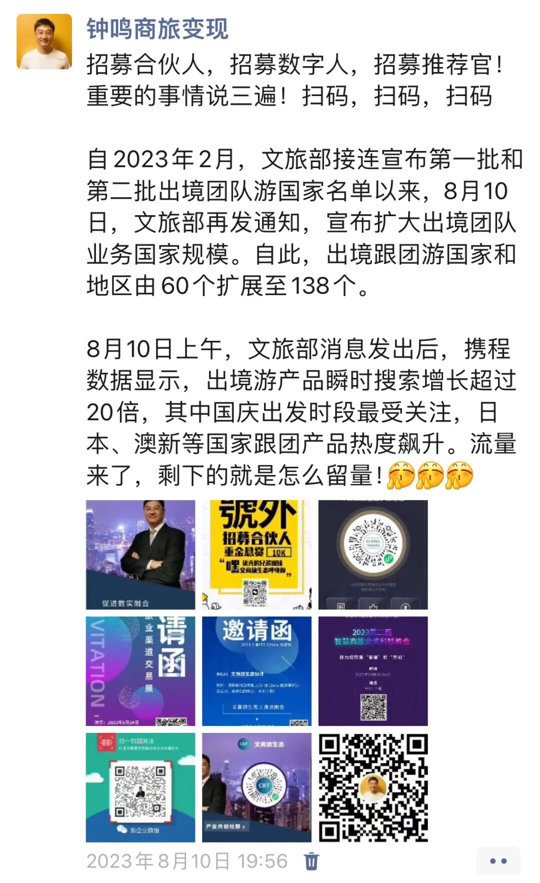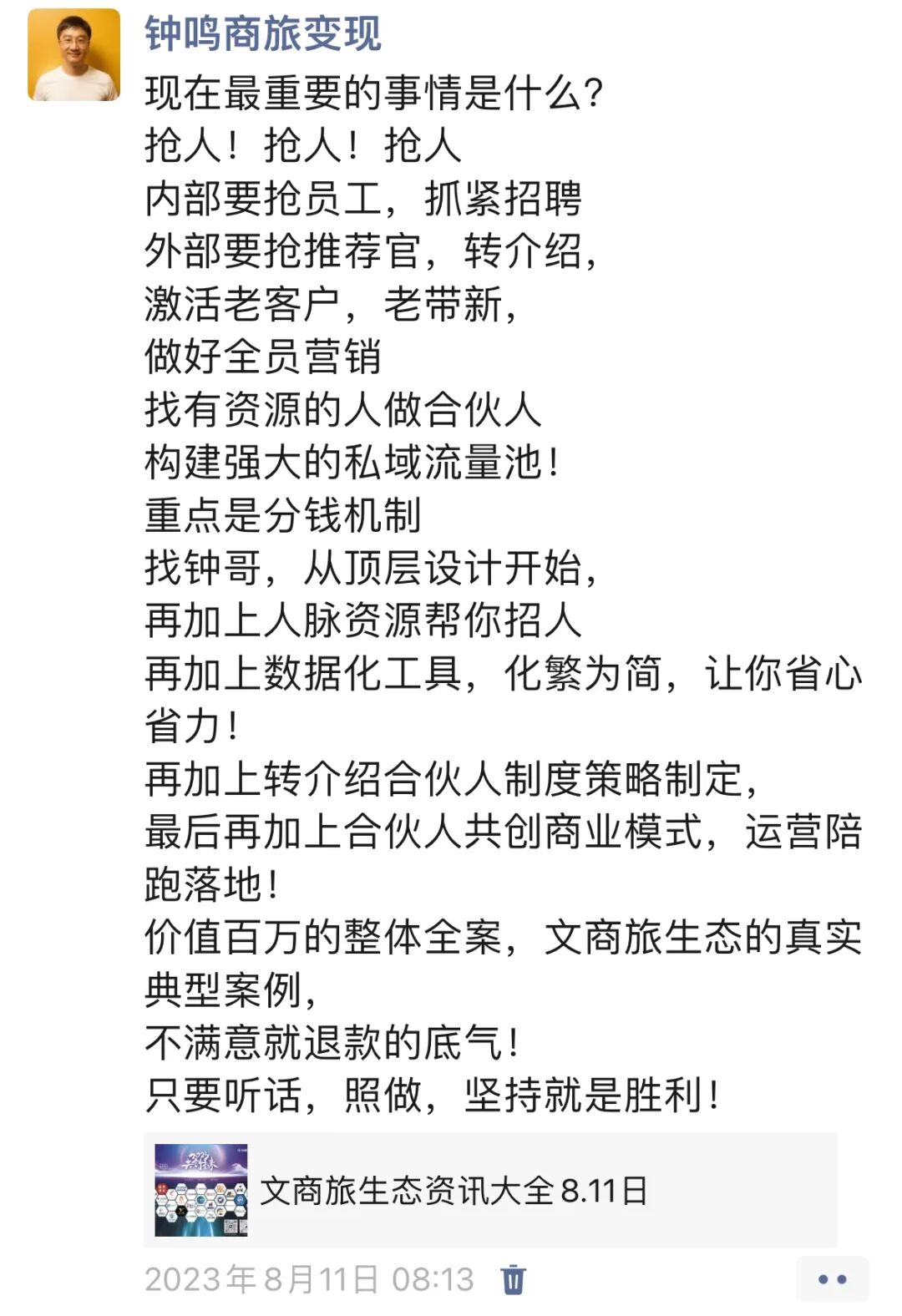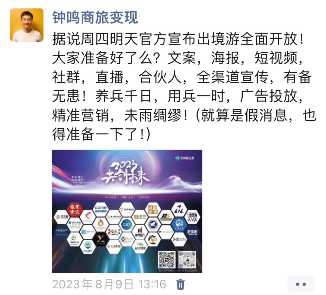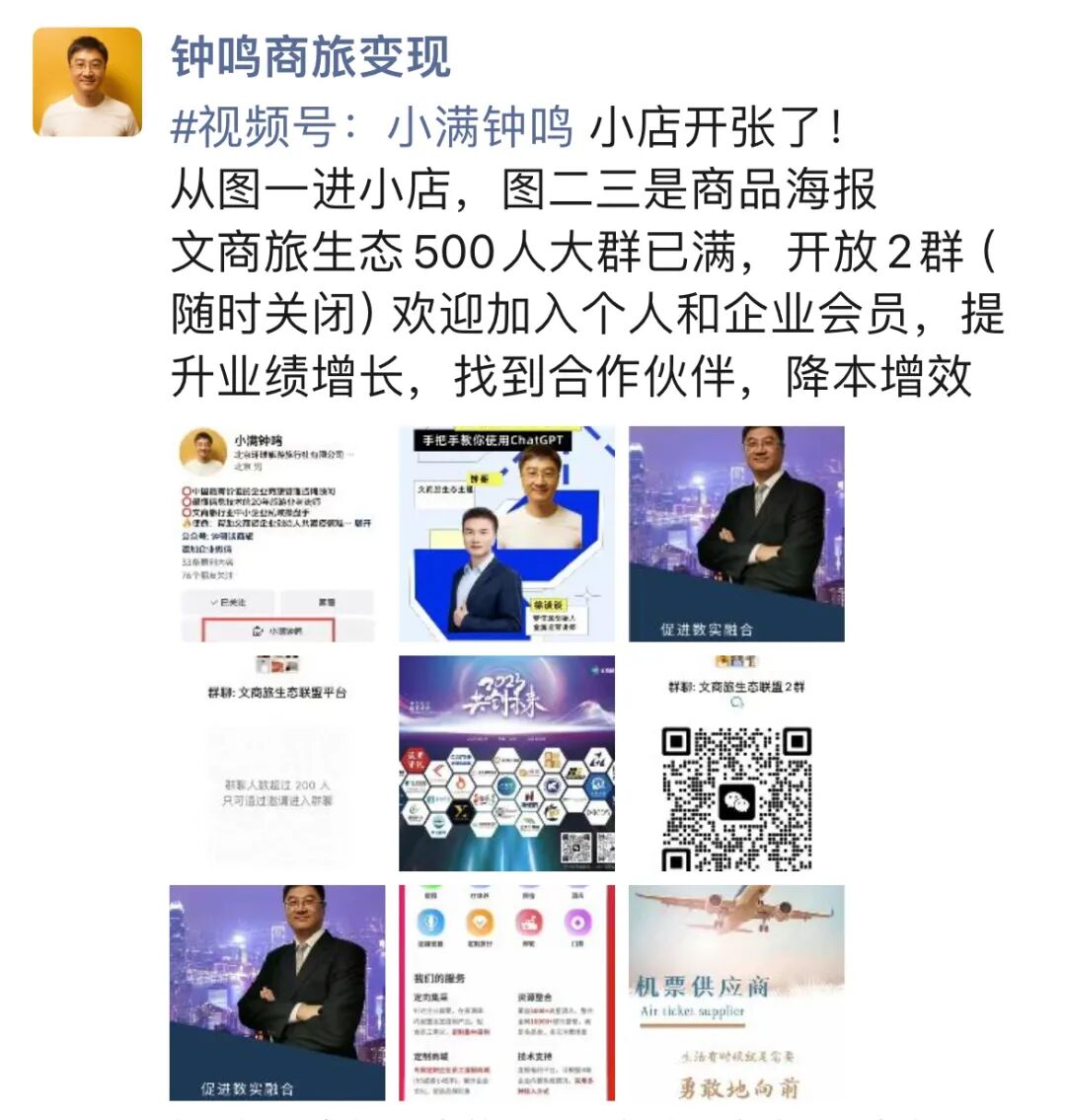 文商旅生态500人大群已满,开放2群(随时关闭)欢迎加入个人和企业会员,提升业绩增长,找到合作伙伴,降本增效