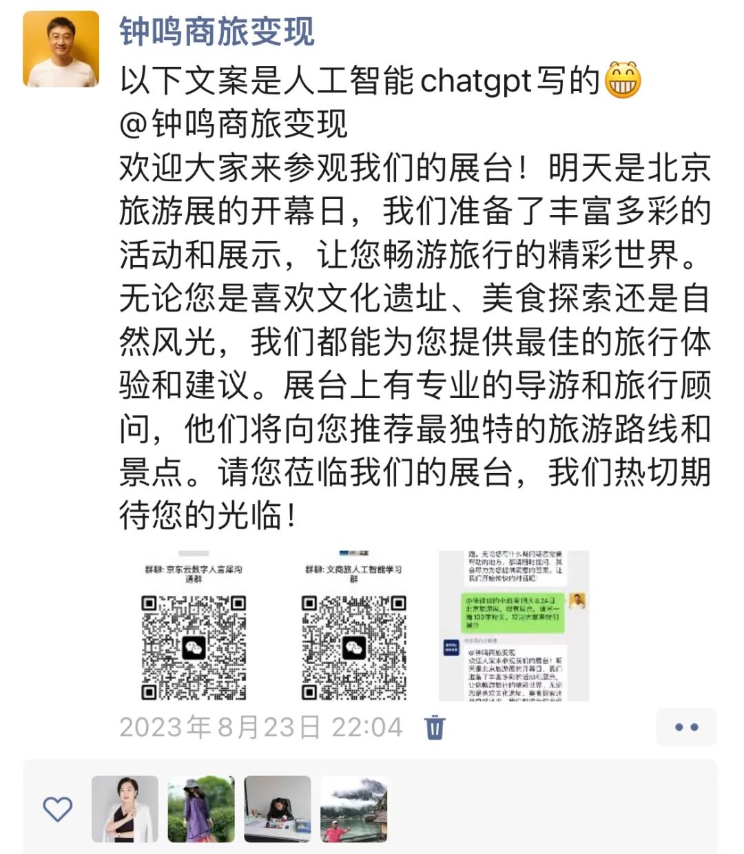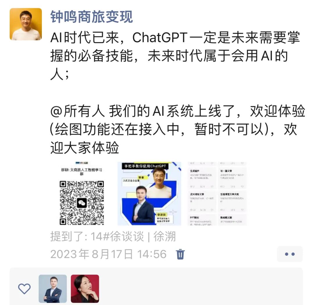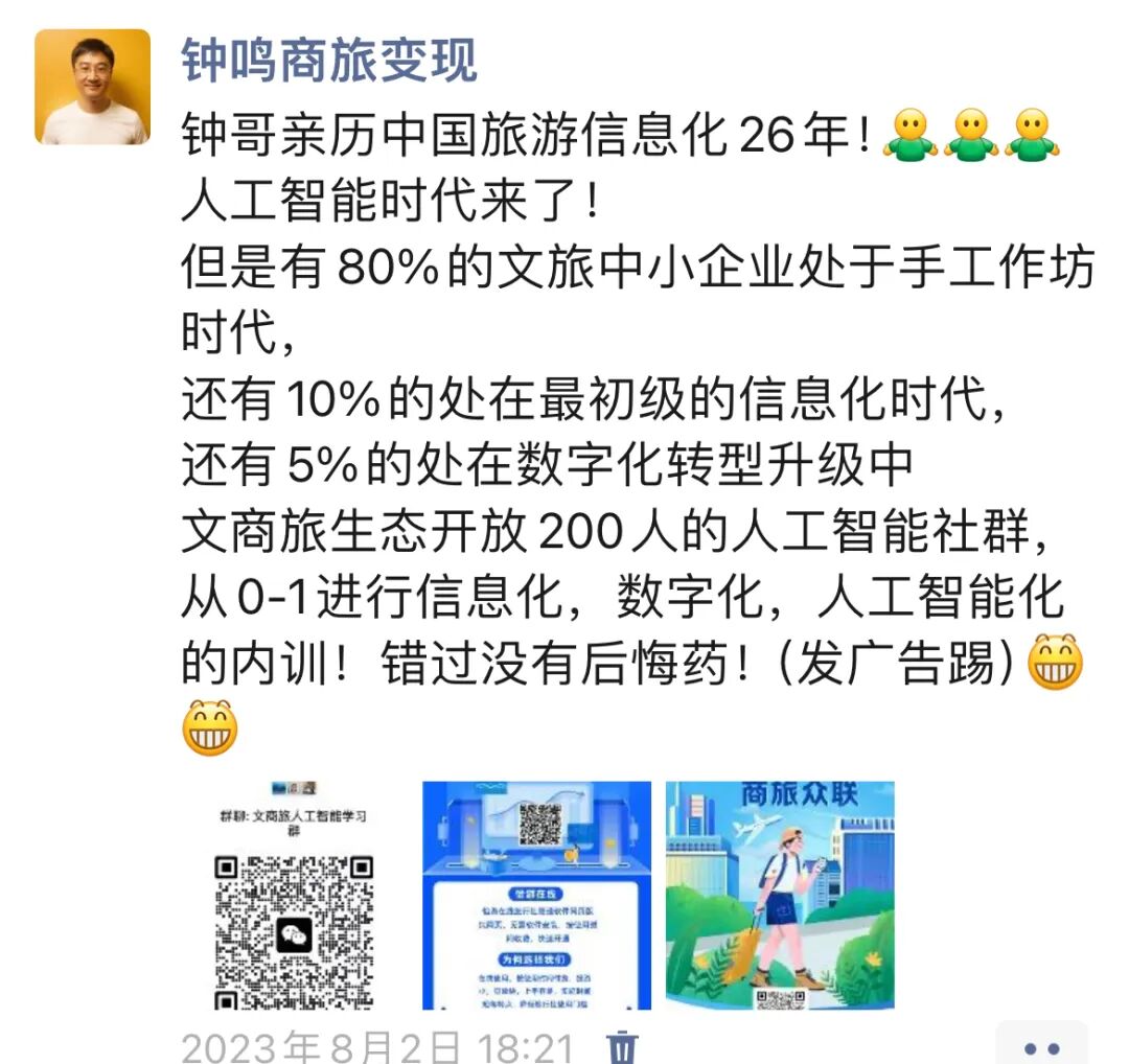 文商旅生态开放200人的人工智能社群,从0-1进行信息化,数字化,人工智能化的内训!错过没有后悔药!