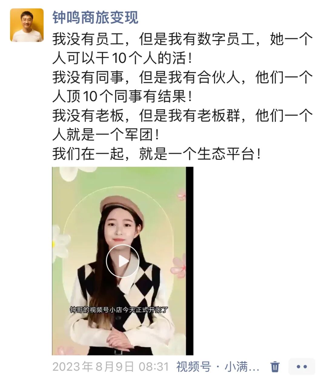 我没有员工,但是我有数字员工,她一个人可以干10个人的活!
