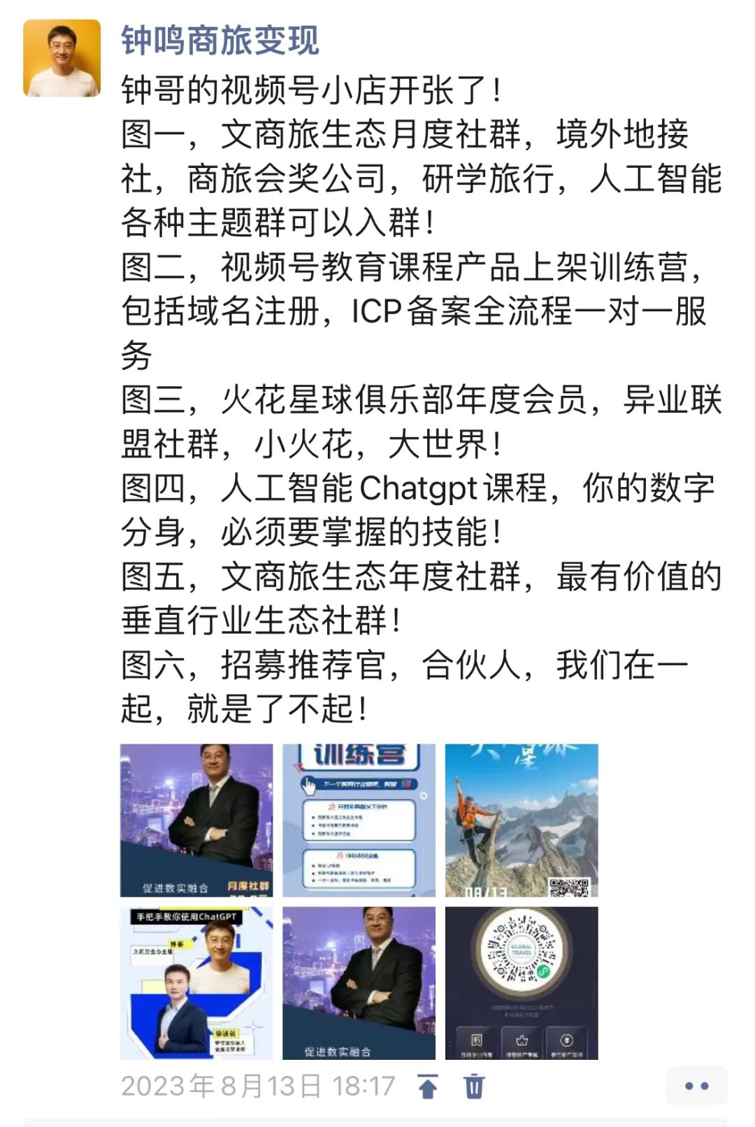 图一,文商旅生态月度社群,境外地接社,商旅会奖公司,研学旅行,人工智能各种主题群可以入群!