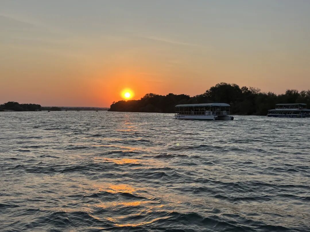 乘坐游船游赞比西河欣赏绝美日落